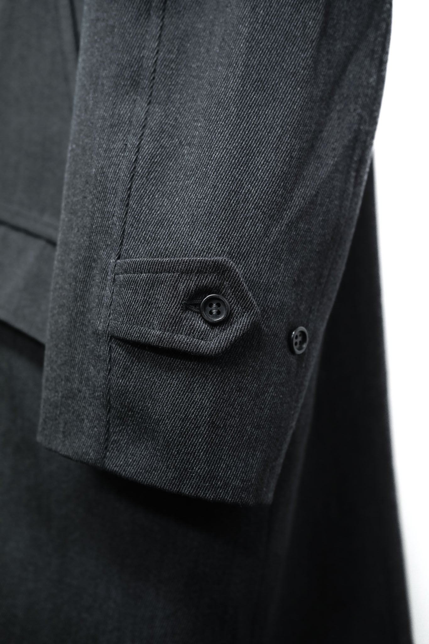 袖口にはアジャスト用のタブが付き、さりげない実用性と意匠性を両立しています。