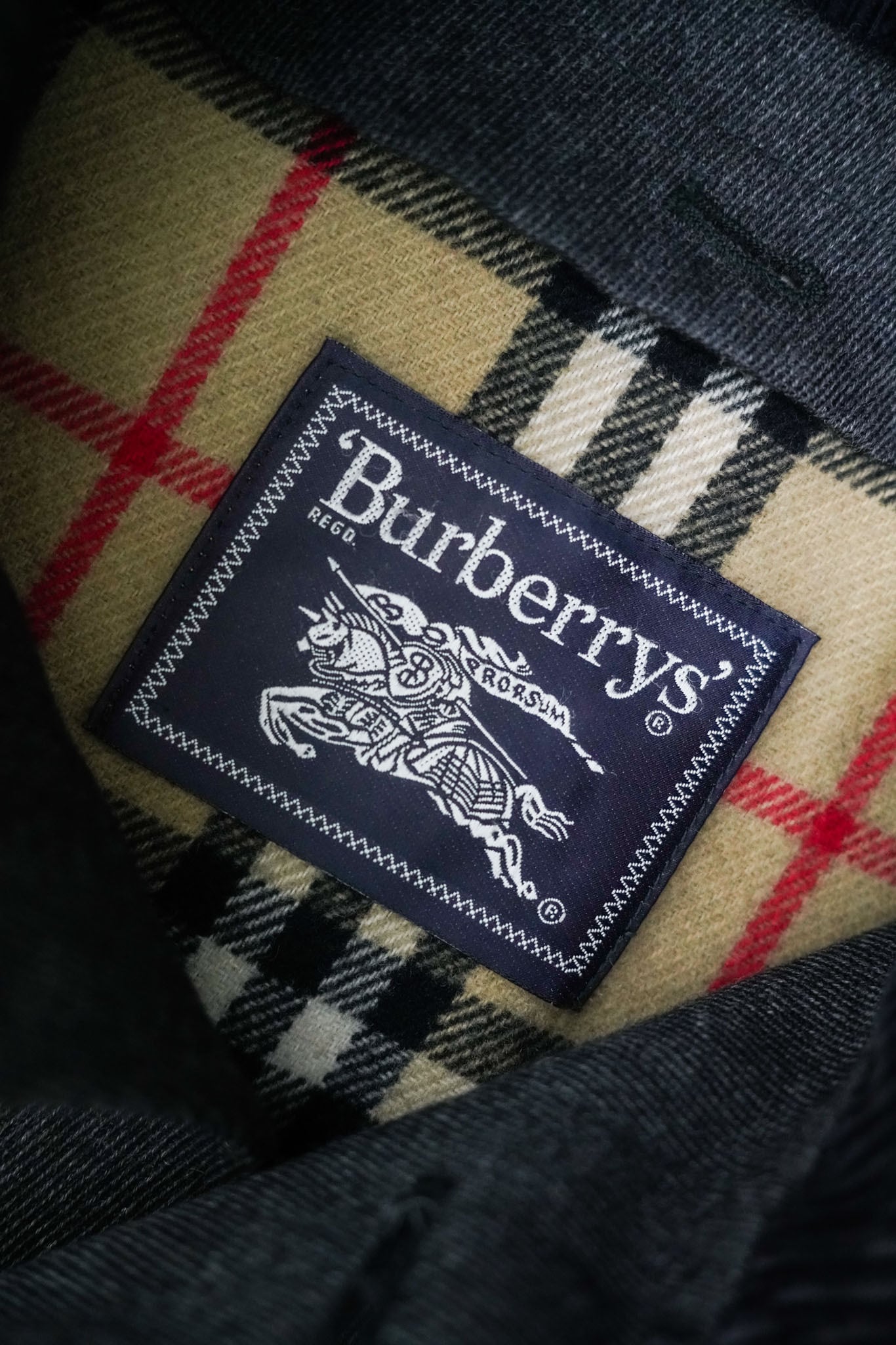 襟裏および身頃のライニングには、バーバリーを象徴するチェック柄を採用。