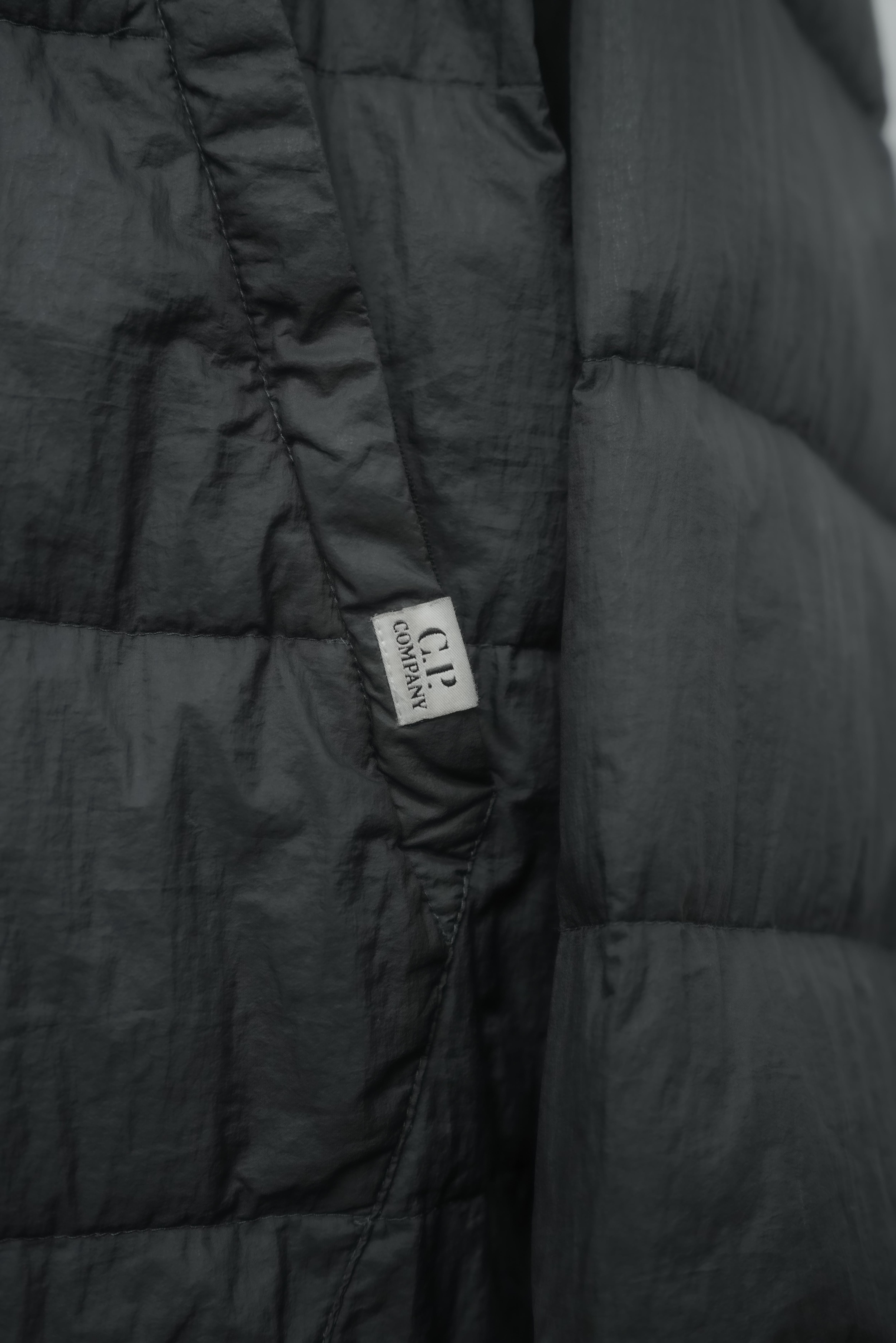 イタリア発のブランド C.P. Company による、2021年製フーデッドダウンジャケット。