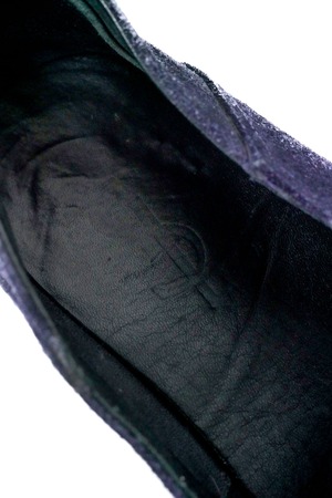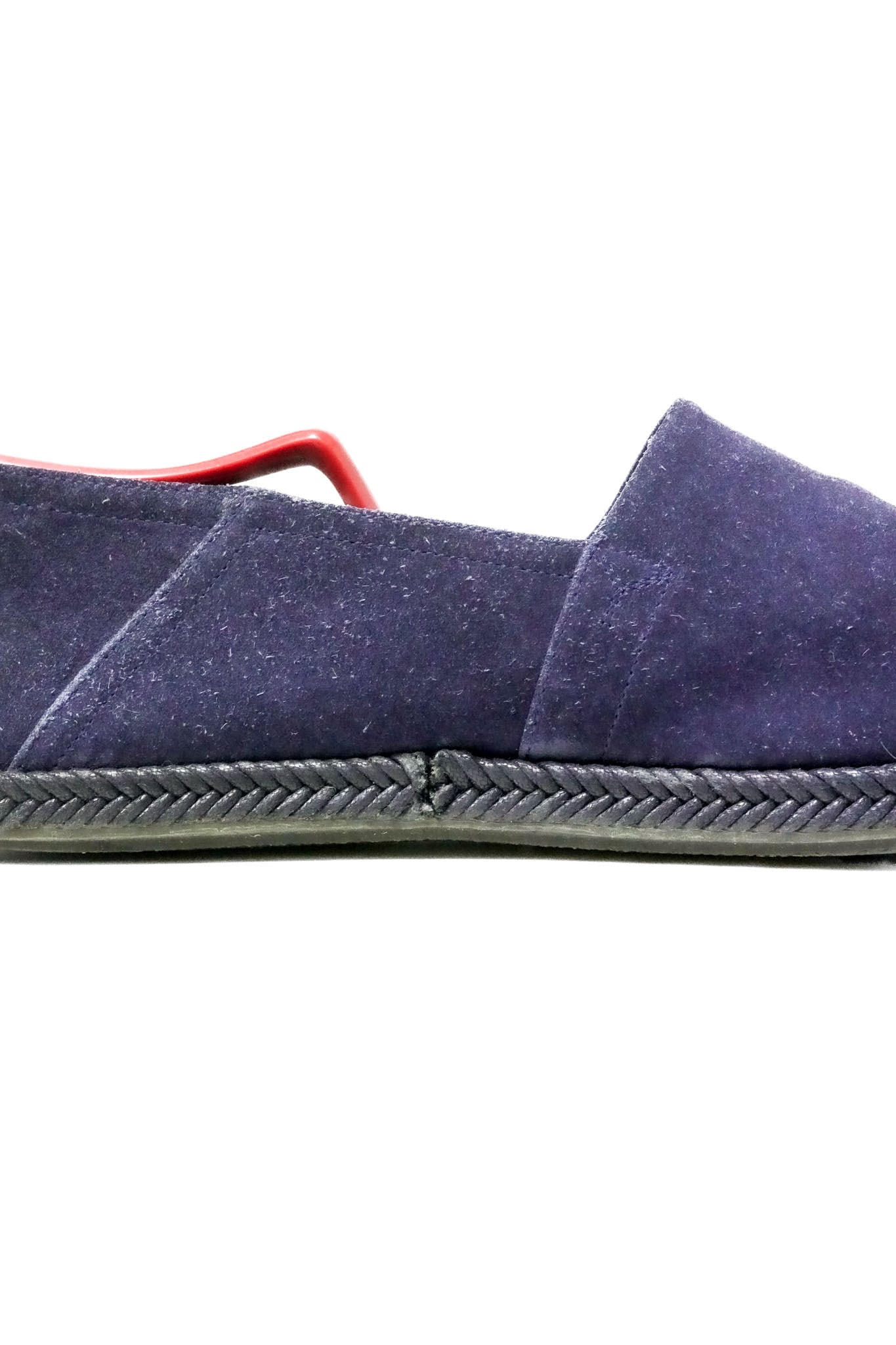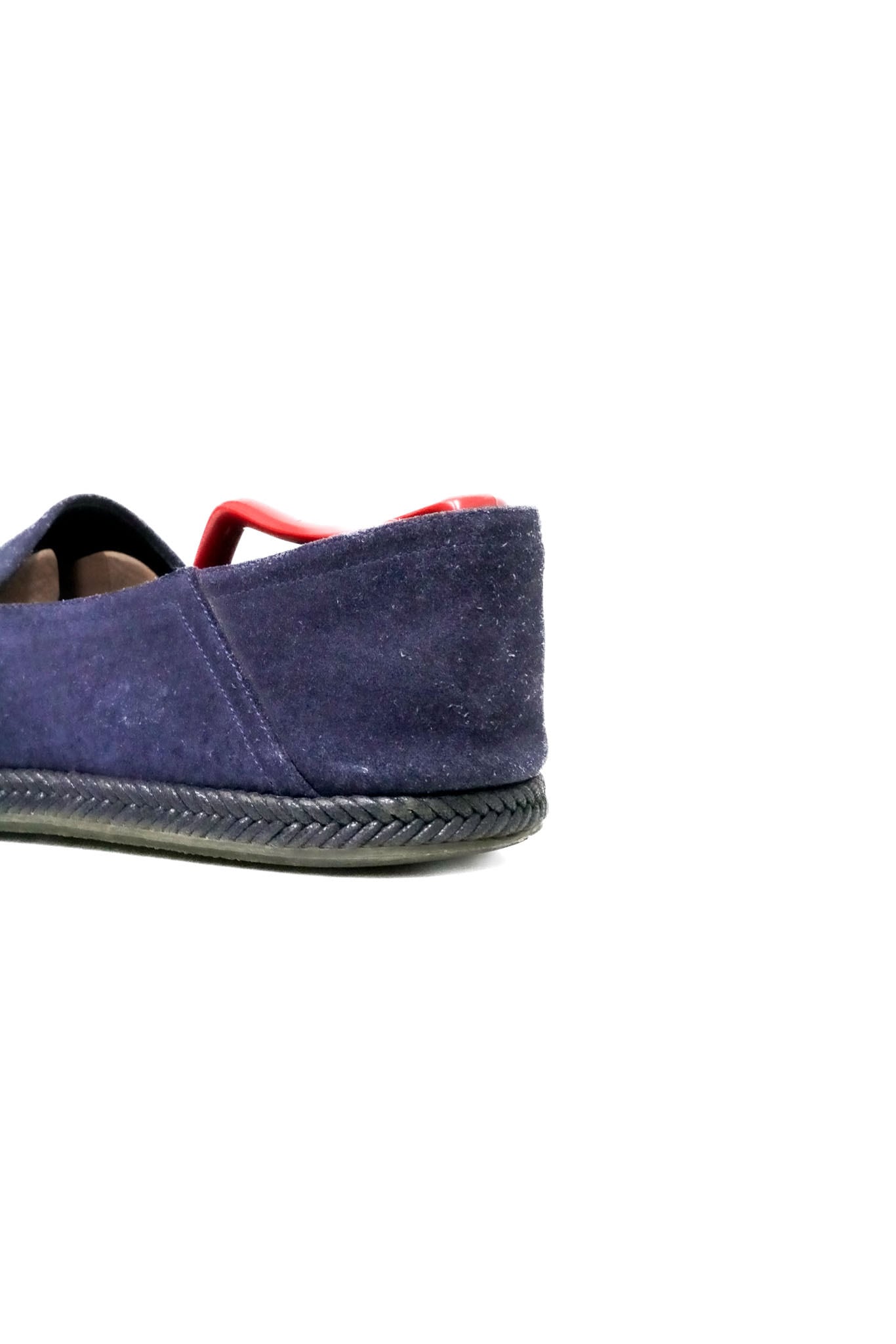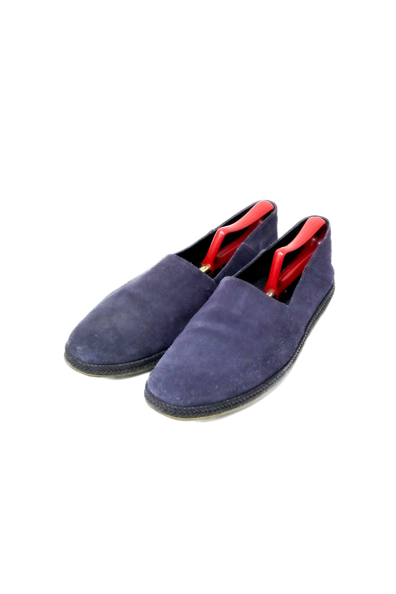 素材には上質なスエードレザーを使用。細やかな起毛は光を柔らかく受け止め、深いネイビーの色調に微かな陰影を与えています。