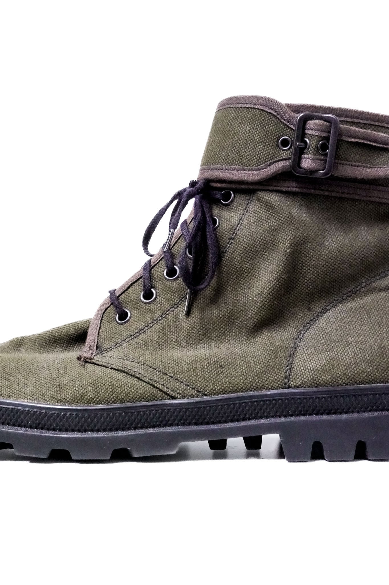 本来のフランス軍仕様では足首に二連のバックルが配されることが多いですが、本作ではあえてシングルバックルへと簡略化。