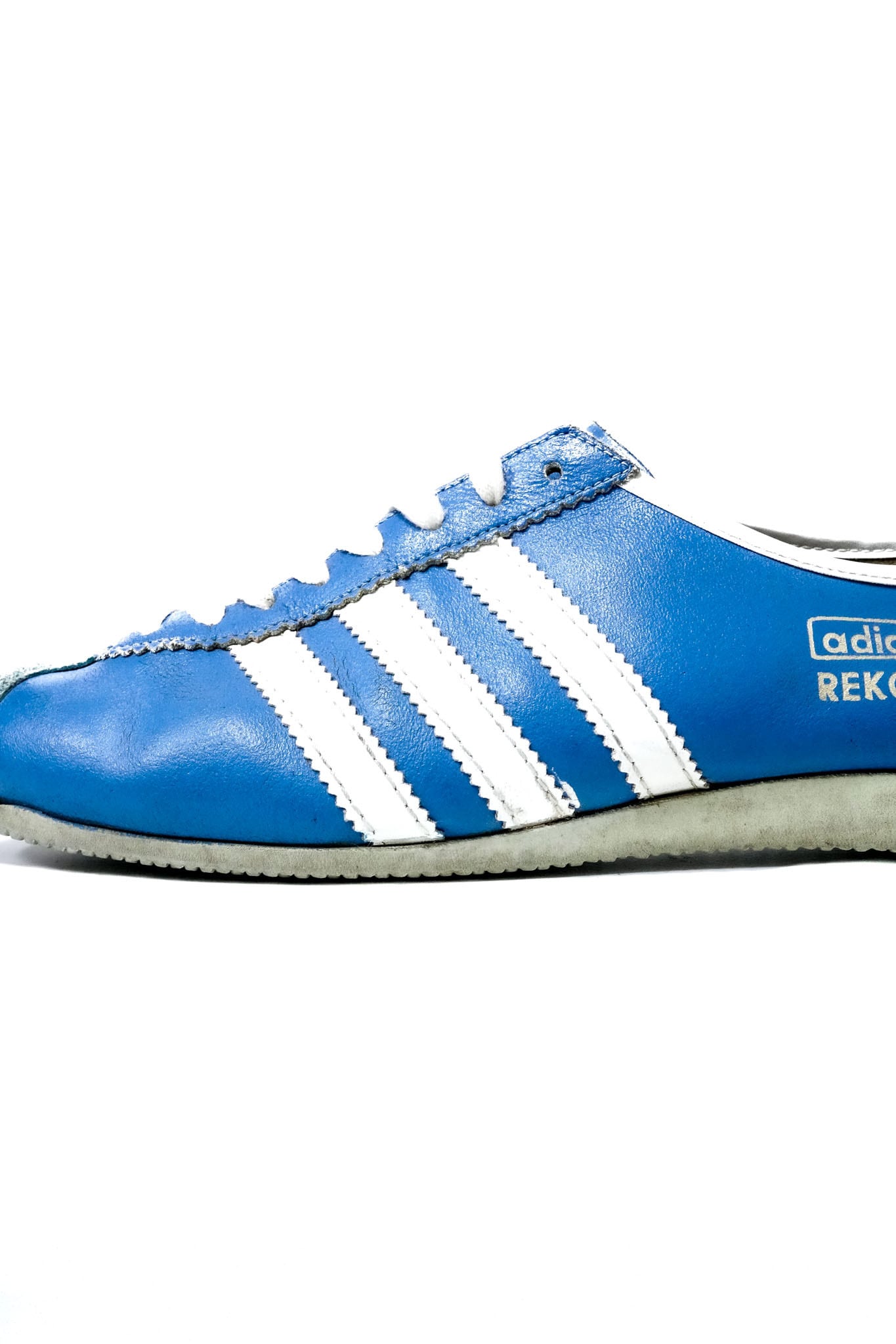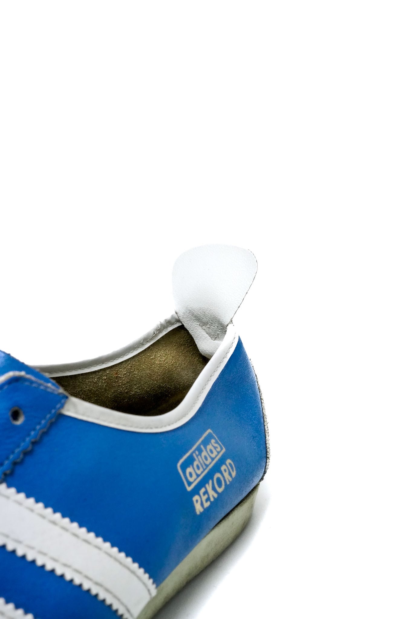 サイドに配されたホワイトのスリーストライプス、そしてヒールに刻まれた"REKORD"のロゴが、この時代のアディダスらしい端正なバランスを完成させています。