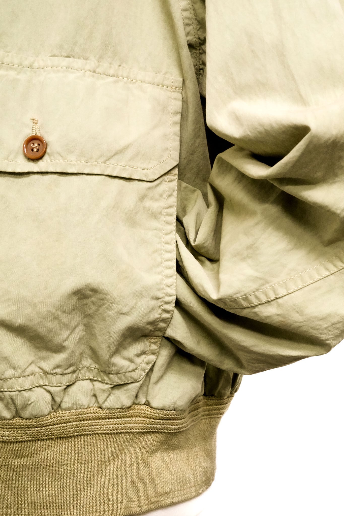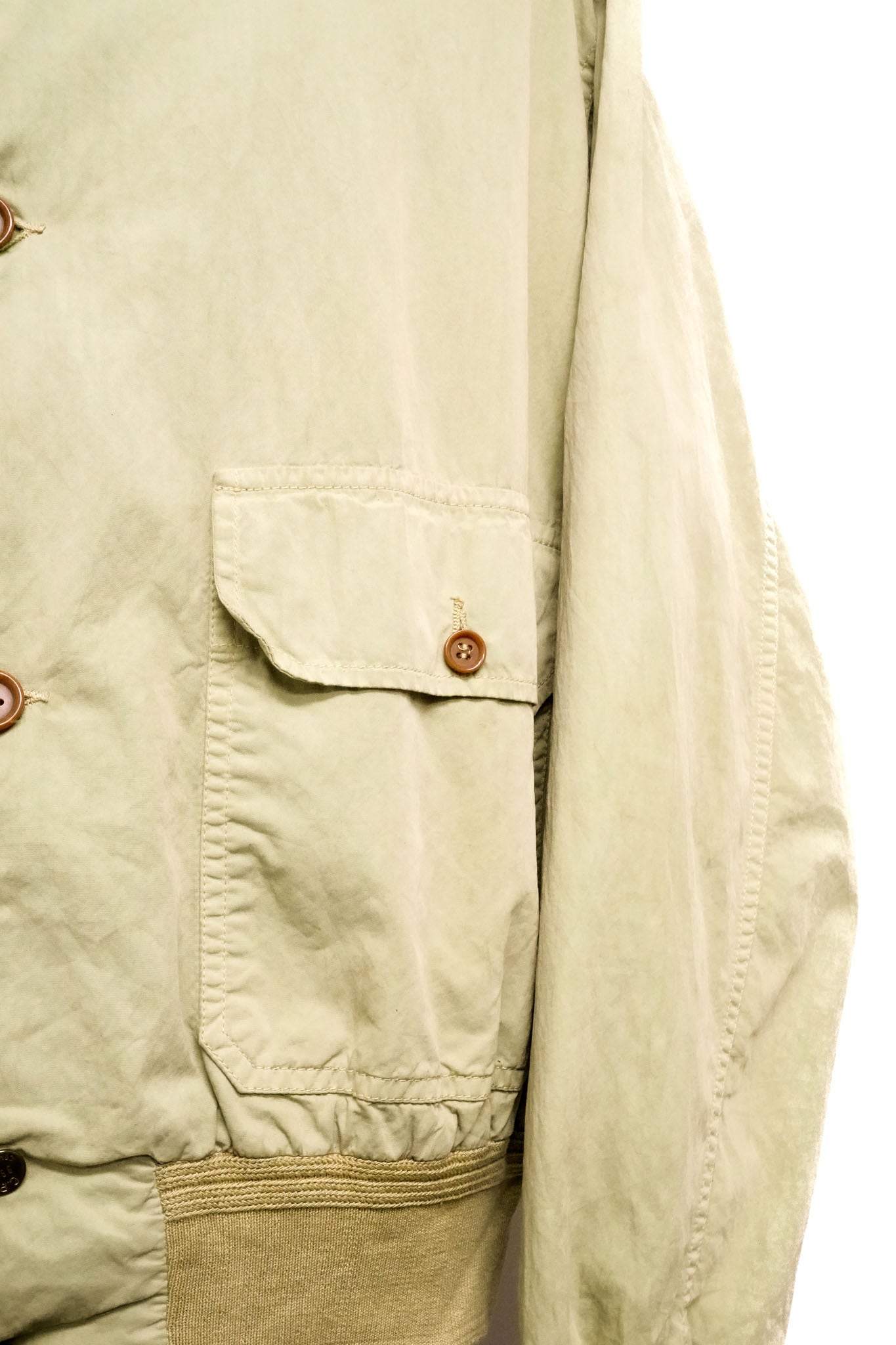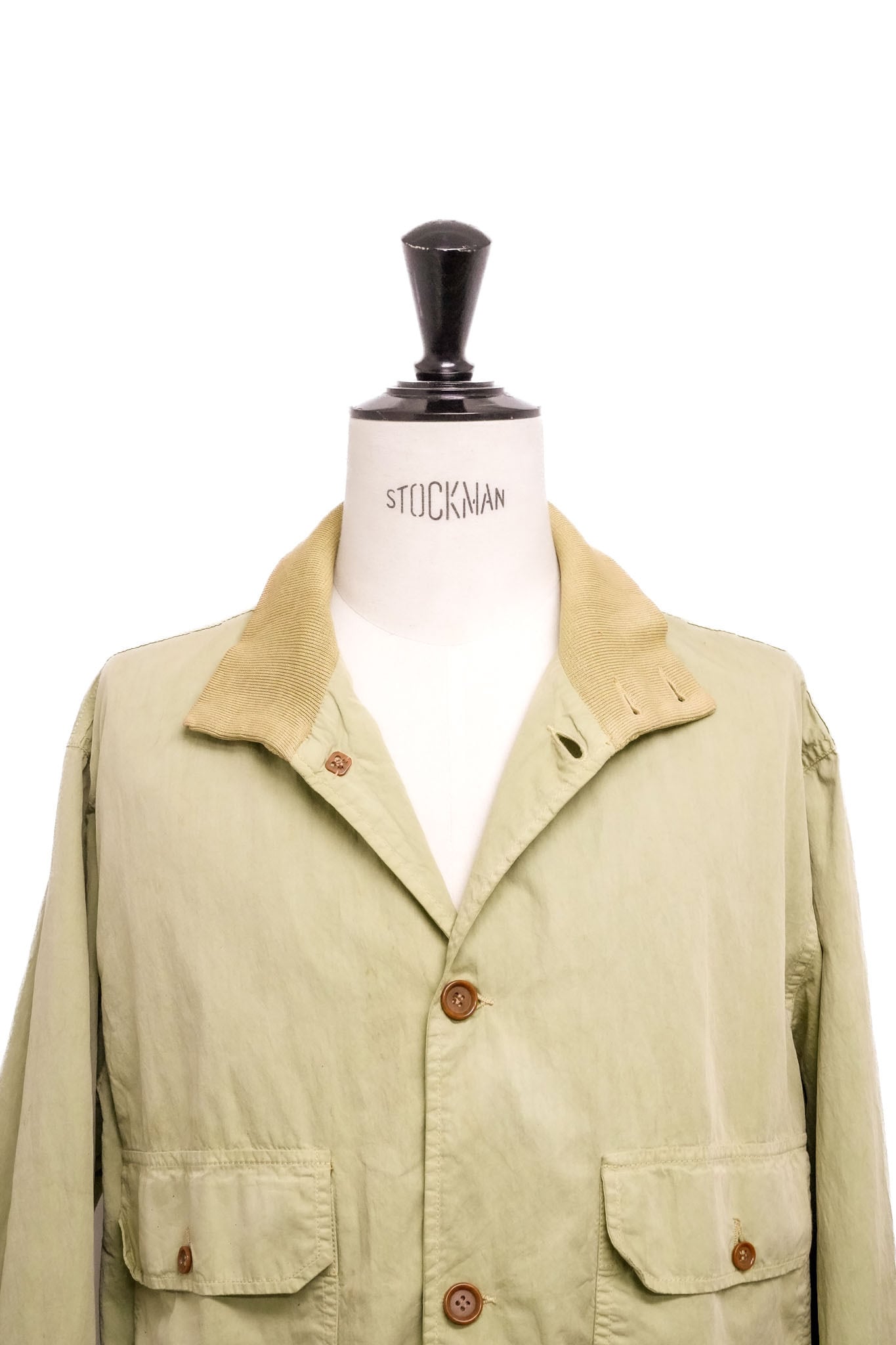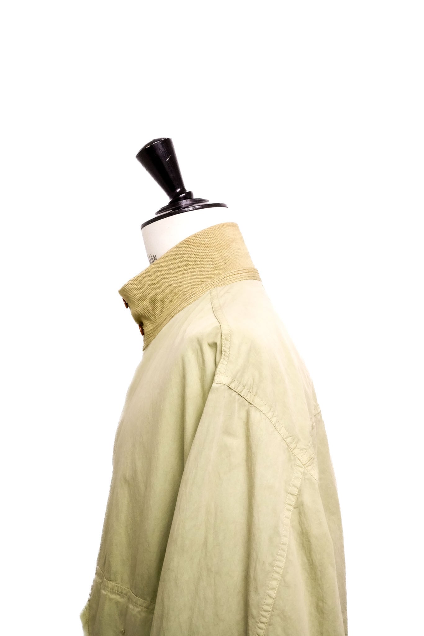 フロントに配されたフラップポケット、リブ仕様の襟・袖・裾は、クラシックなヴァルスターの文脈を踏襲しながらも、どこか機能的な印象を与えます。