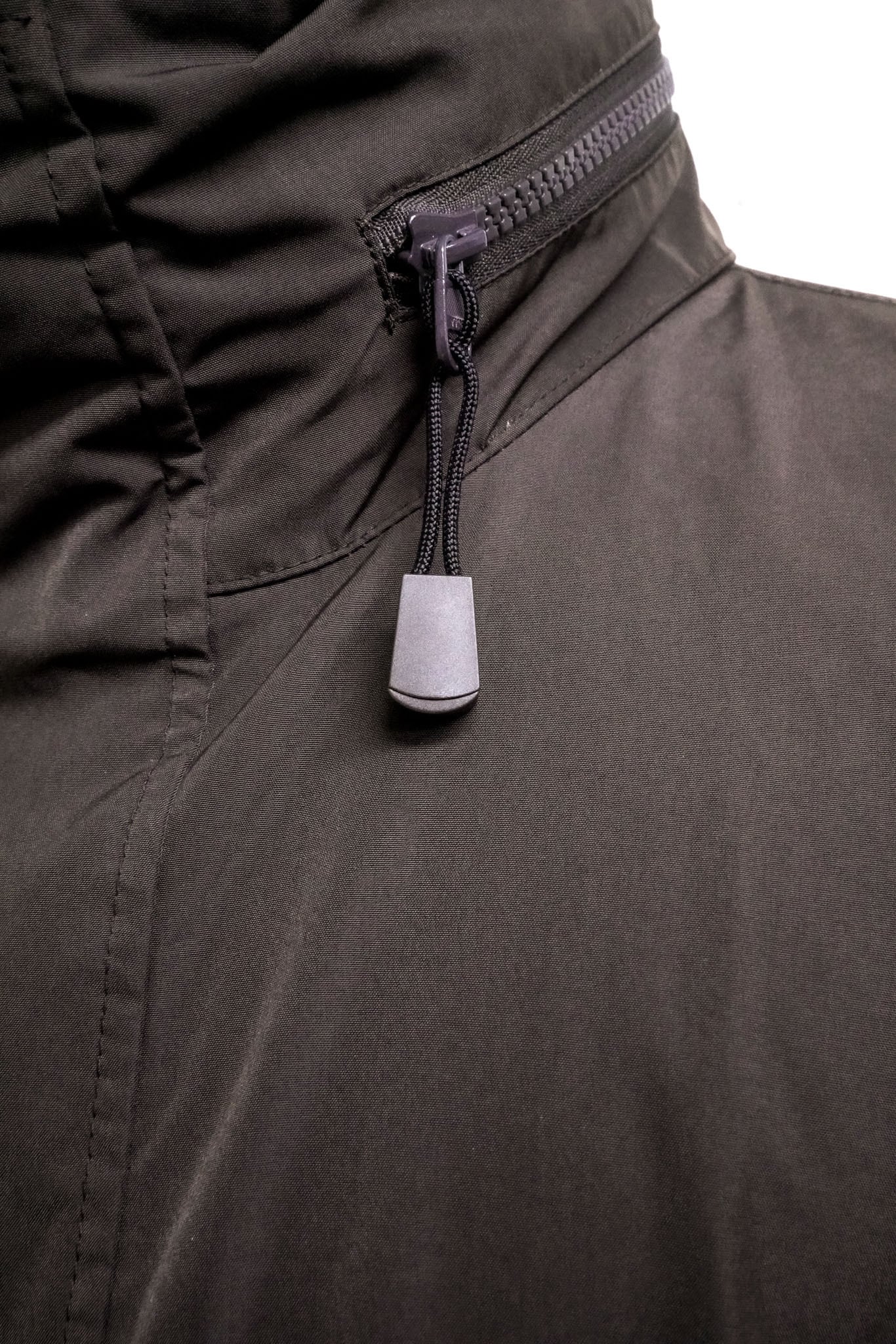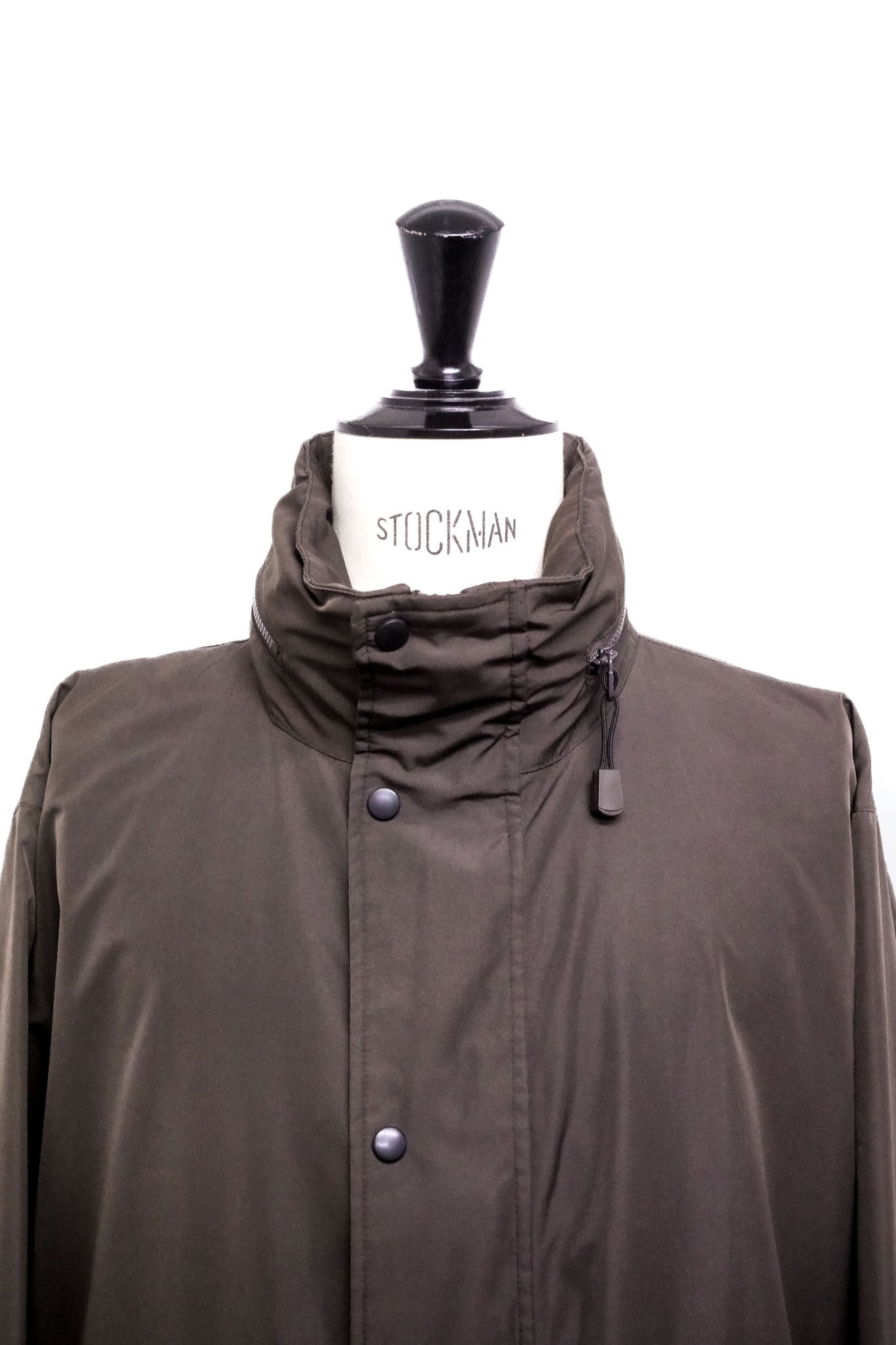 ジップで簡単に取り外すことができる設計となっており、フードを外せばミニマルで洗練されたスタンドカラーコートとして、装着すればより機能的でアクティブな印象へと変化します。