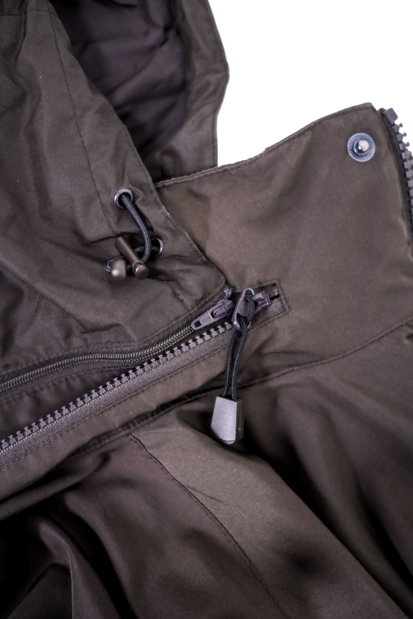 フロントはダブルジップとスナップボタンによる二重構造。