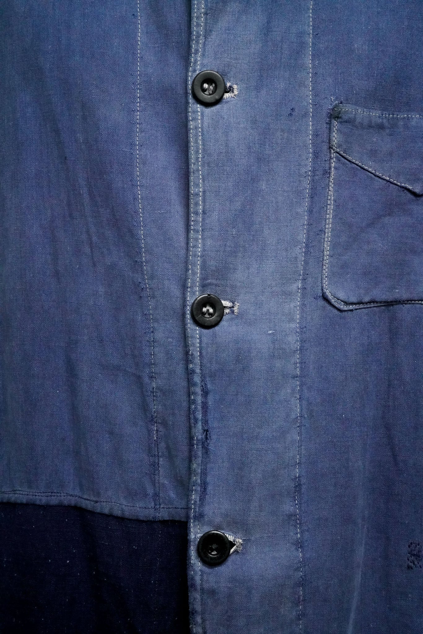 随所に見られる補修跡や切り替えは、単なるダメージではなく、この衣服が大切に扱われ、長く着続けられてきた証。