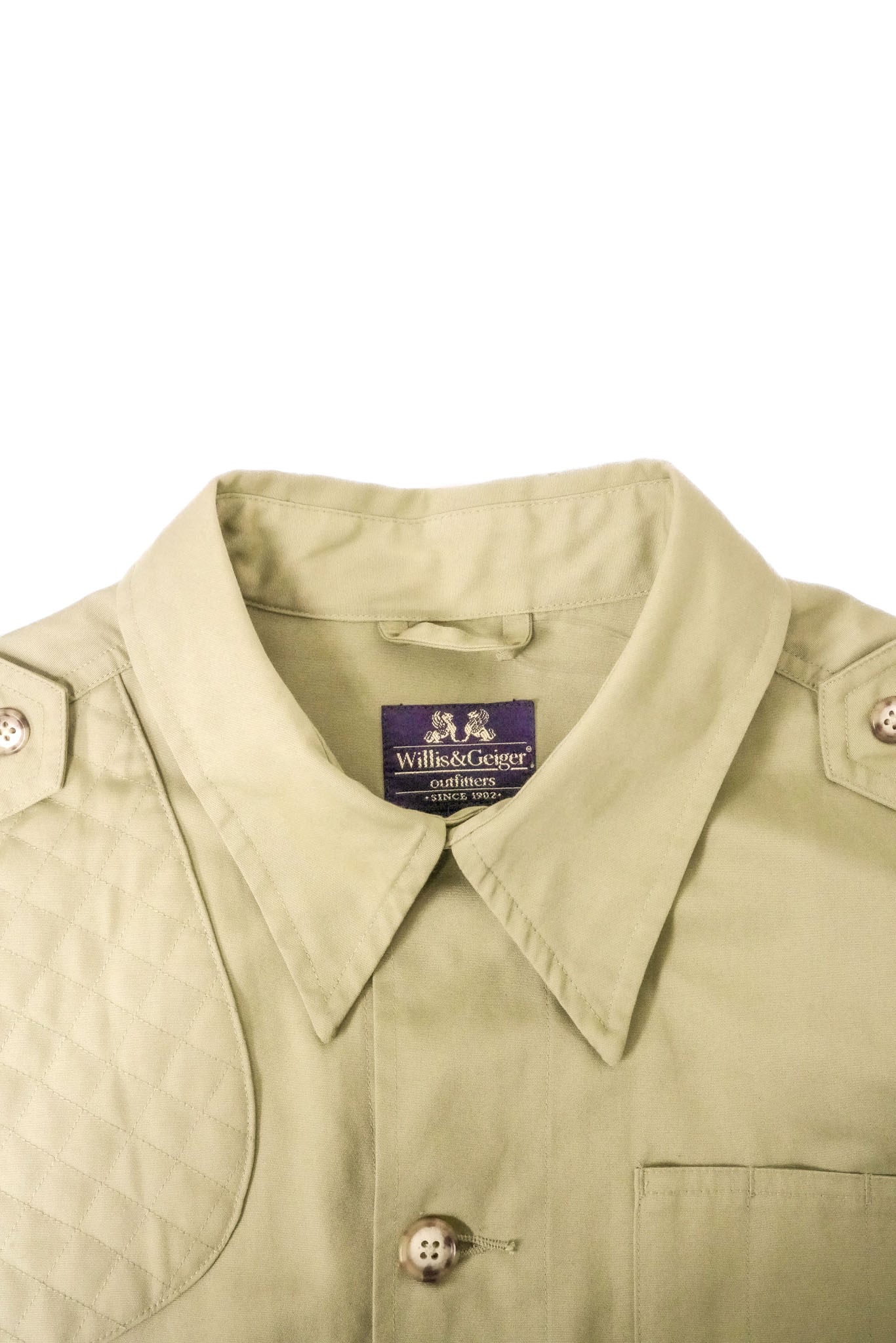 デザインは、いわゆるサファリジャケットをベースにしながらも、Willis & Geigerらしい無骨さと合理性が前面に出た構成。