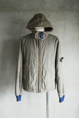 コットン地にSpalmatura coatedが施されており、何色にも属さないヴィンテージライクなカラーリングが際立つ一着。