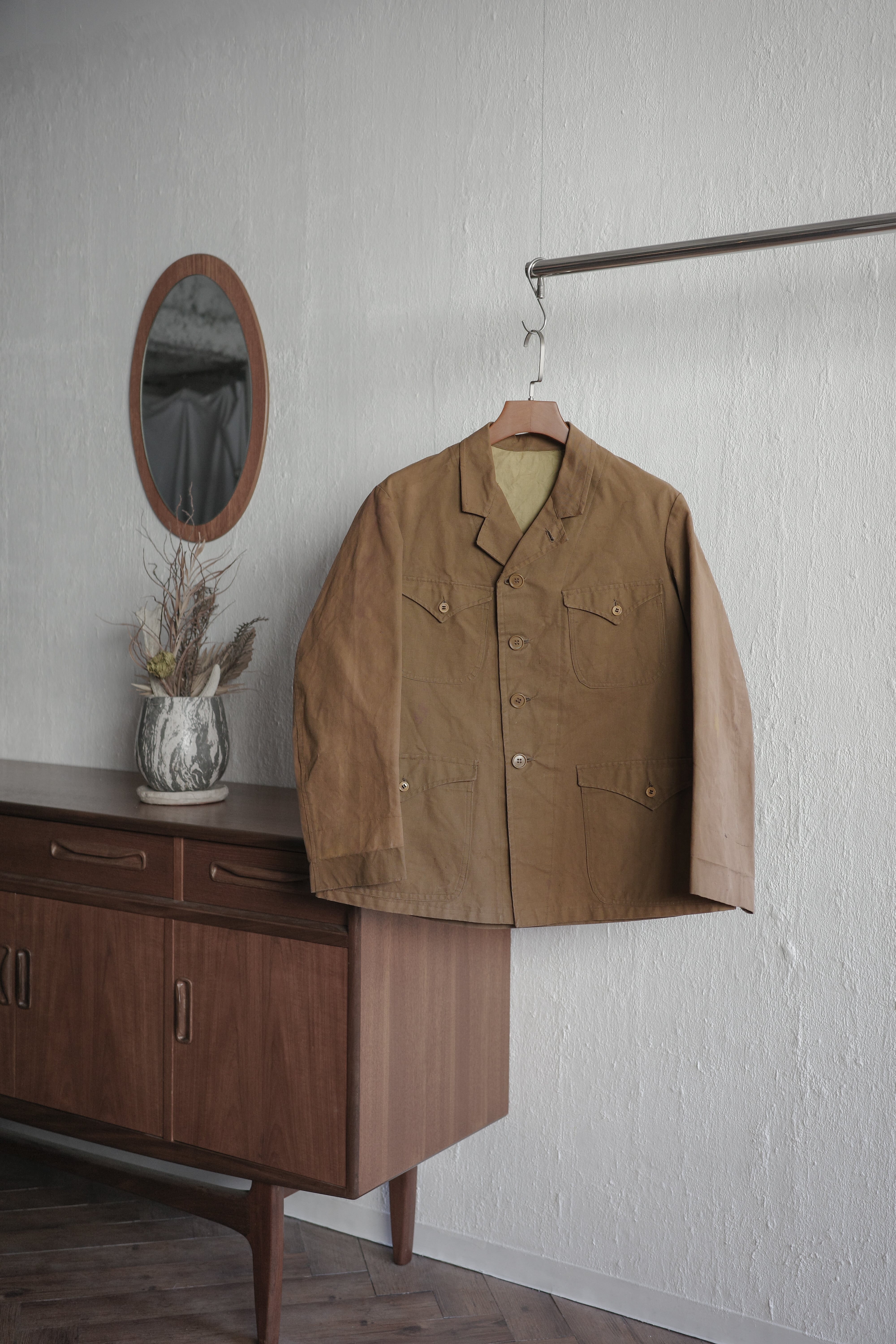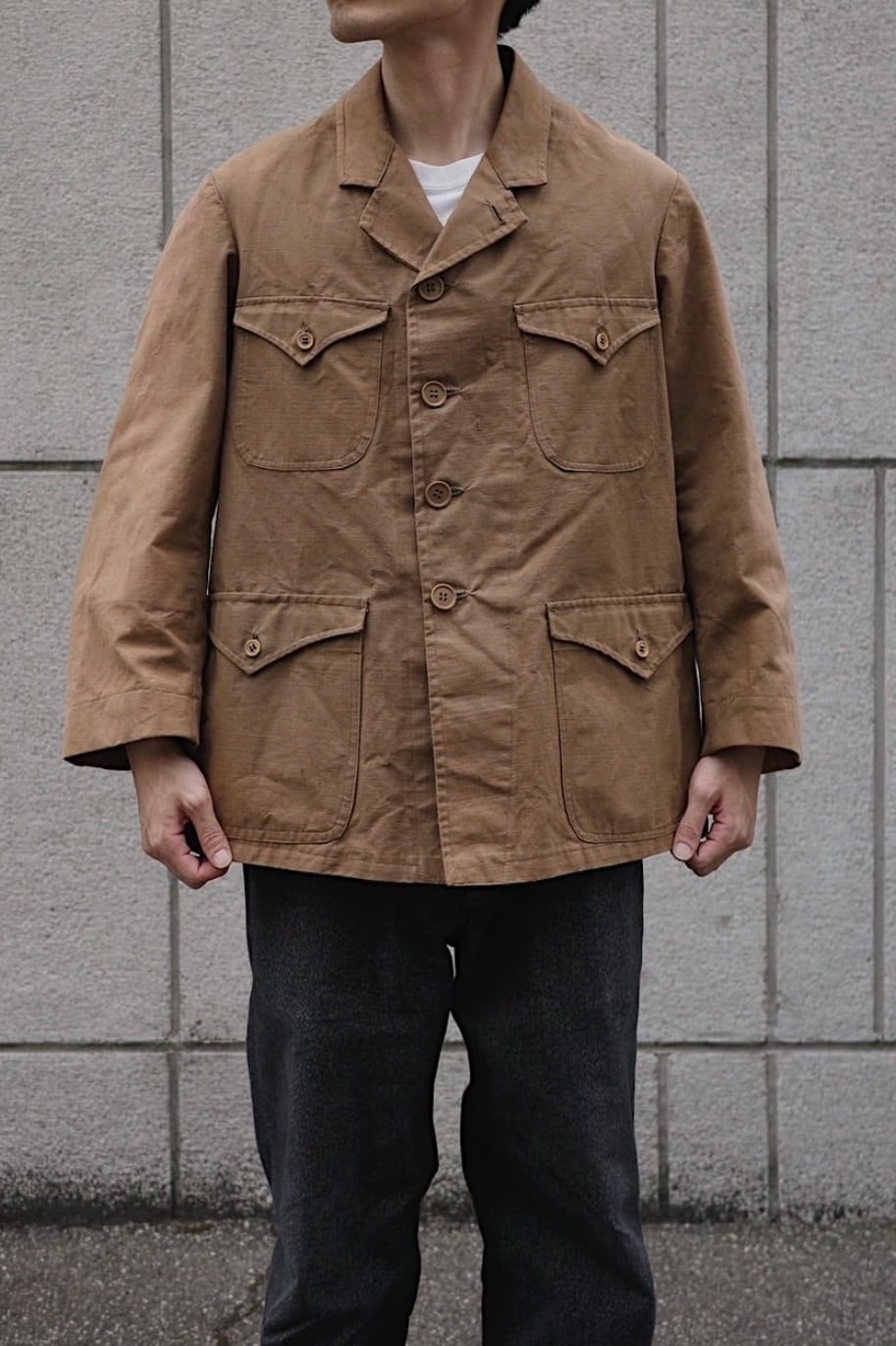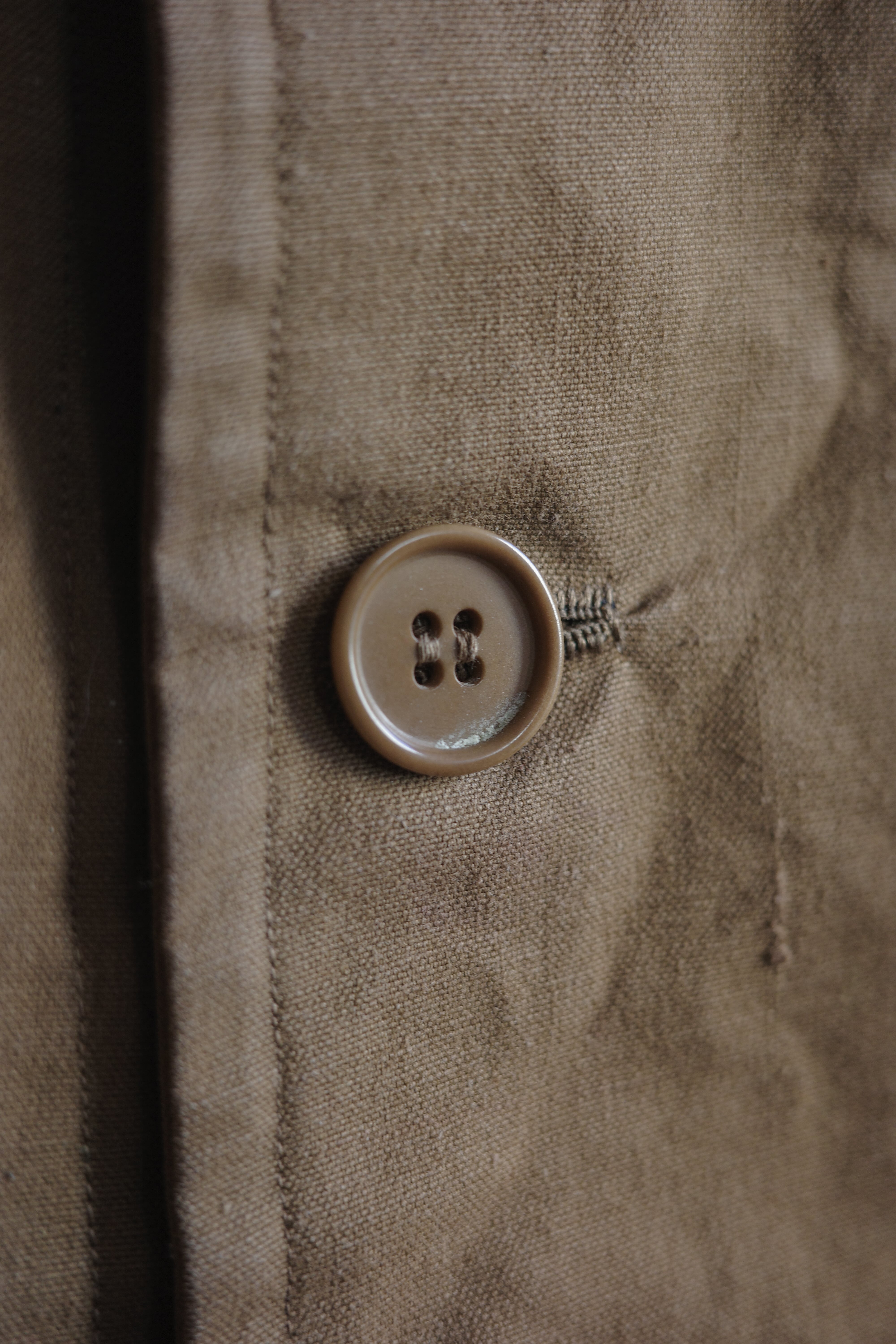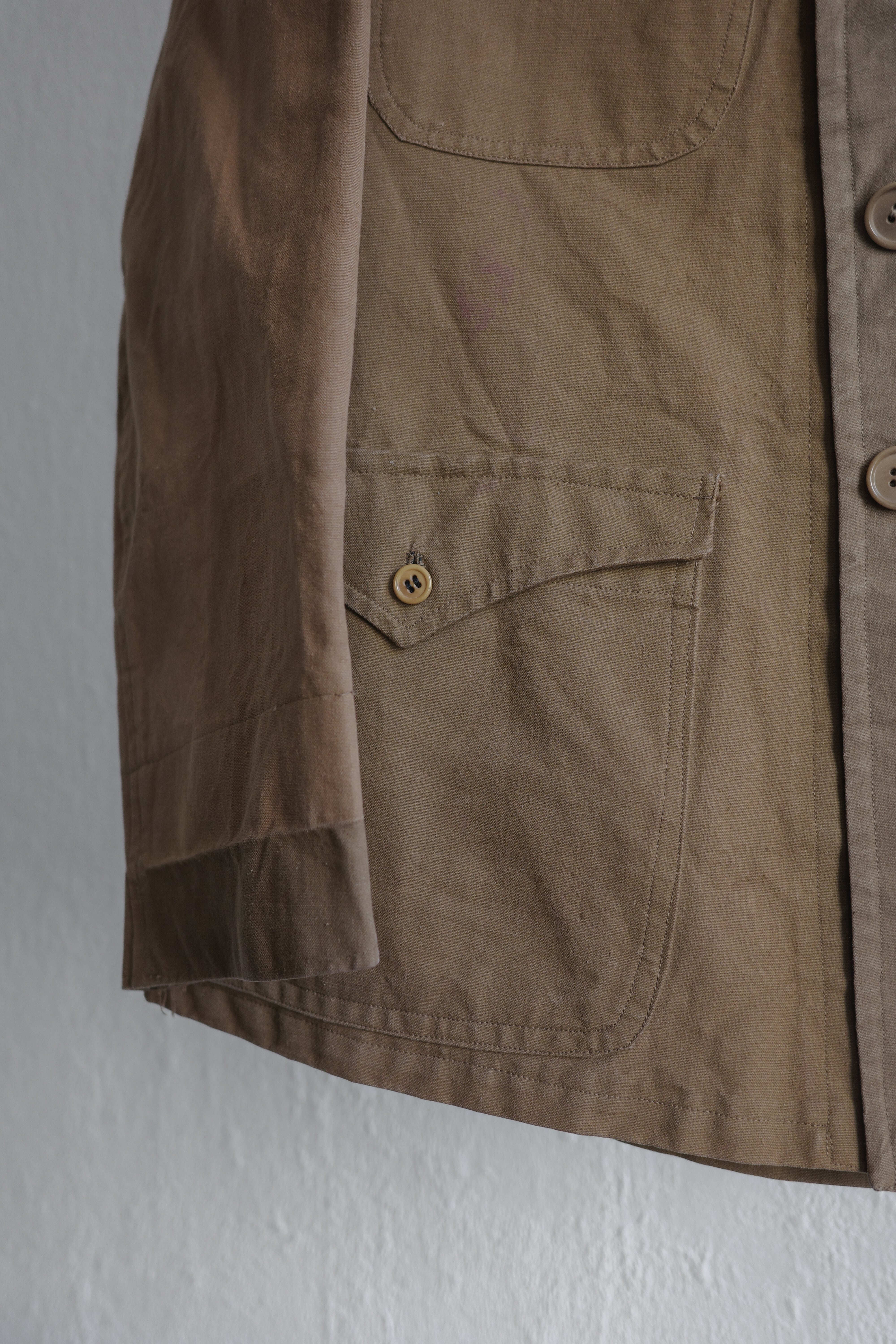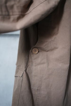 インディゴやブラック系のコットンリネン素材は比較的見る事もありますが、ブラウンカラー個体は滅多に出てきません。