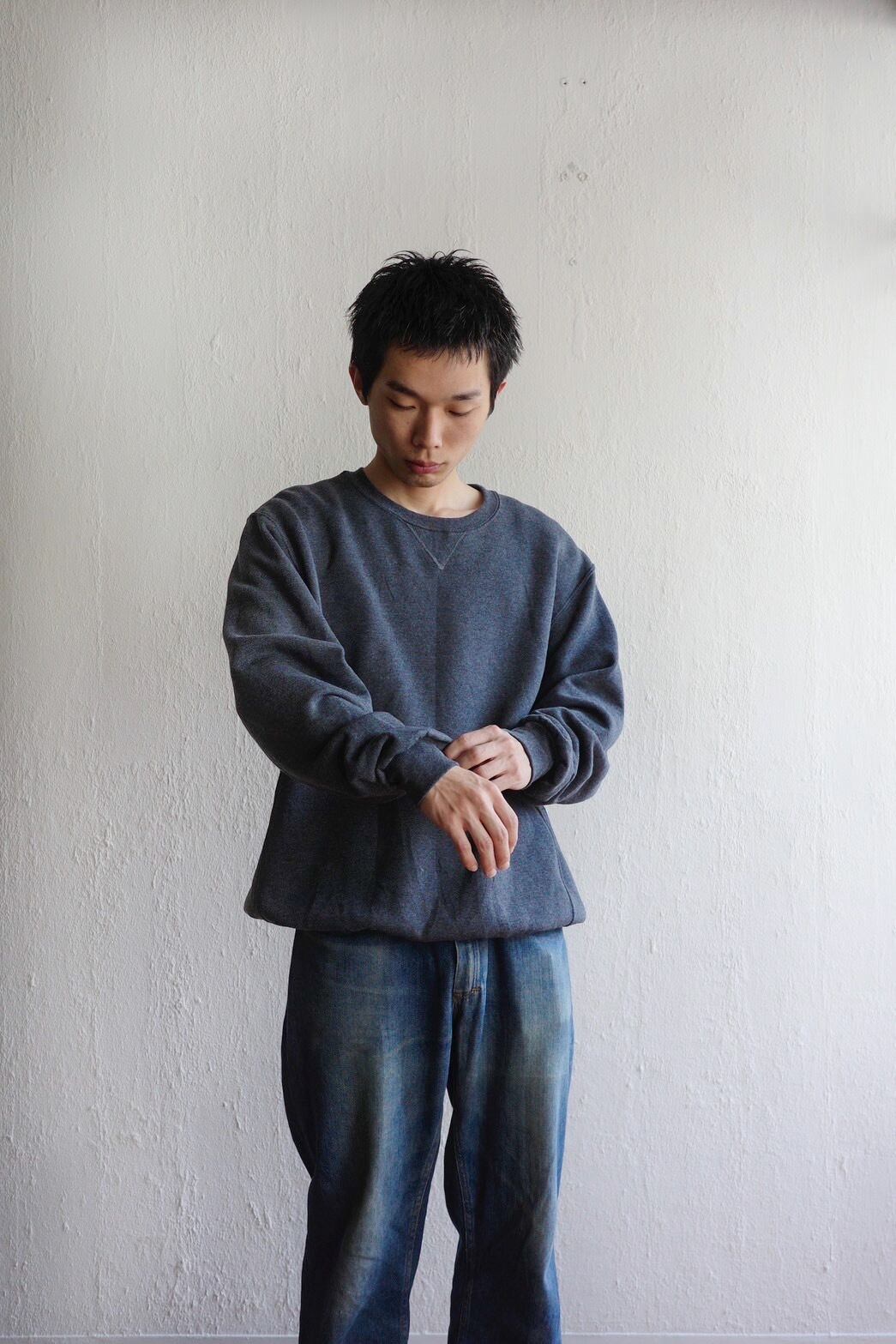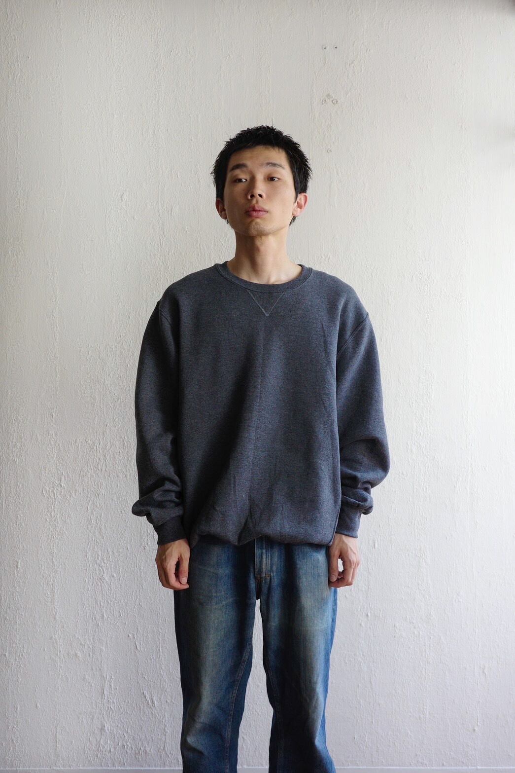 そしてこちらのアイテムは00年代に入ってからのラッセルボディでホンジュラス製になります。裏起毛が気持ちよく、古いスウェットに抵抗感のある方にもお試しただける商品です。全体的に汚れ等もなく冬場に使用度の増すチャコールグレーの色味にヴィンテージスウェットを彷彿とさせる「フロントV」のみのデザイン。無地のデザインなしのトップスに飽きた方に刺さること間違い無いかと。色・サイズ・シルエット・デザイン全て良しなスウェットアイテムをこの機会に是非お試しください。
