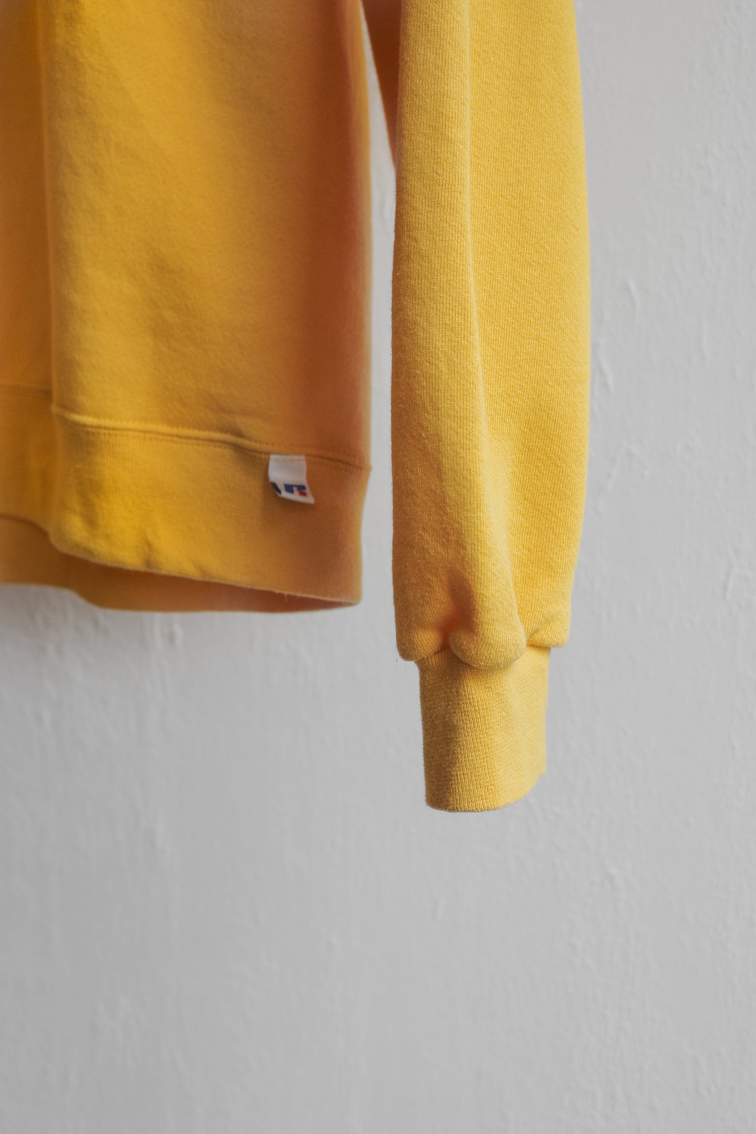 そしてこちらのアイテムは00年代に入ってからのラッセルボディでエルサルバドル製になります。裏起毛が気持ちよく、古いスウェットに抵抗感のある方にもお試しただける商品です。全体的に汚れ等もなく秋から冬場に使用度の増す発色の良いマスタードの色味にヴィンテージスウェットを彷彿とさせる「フロントV」のみのデザイン。