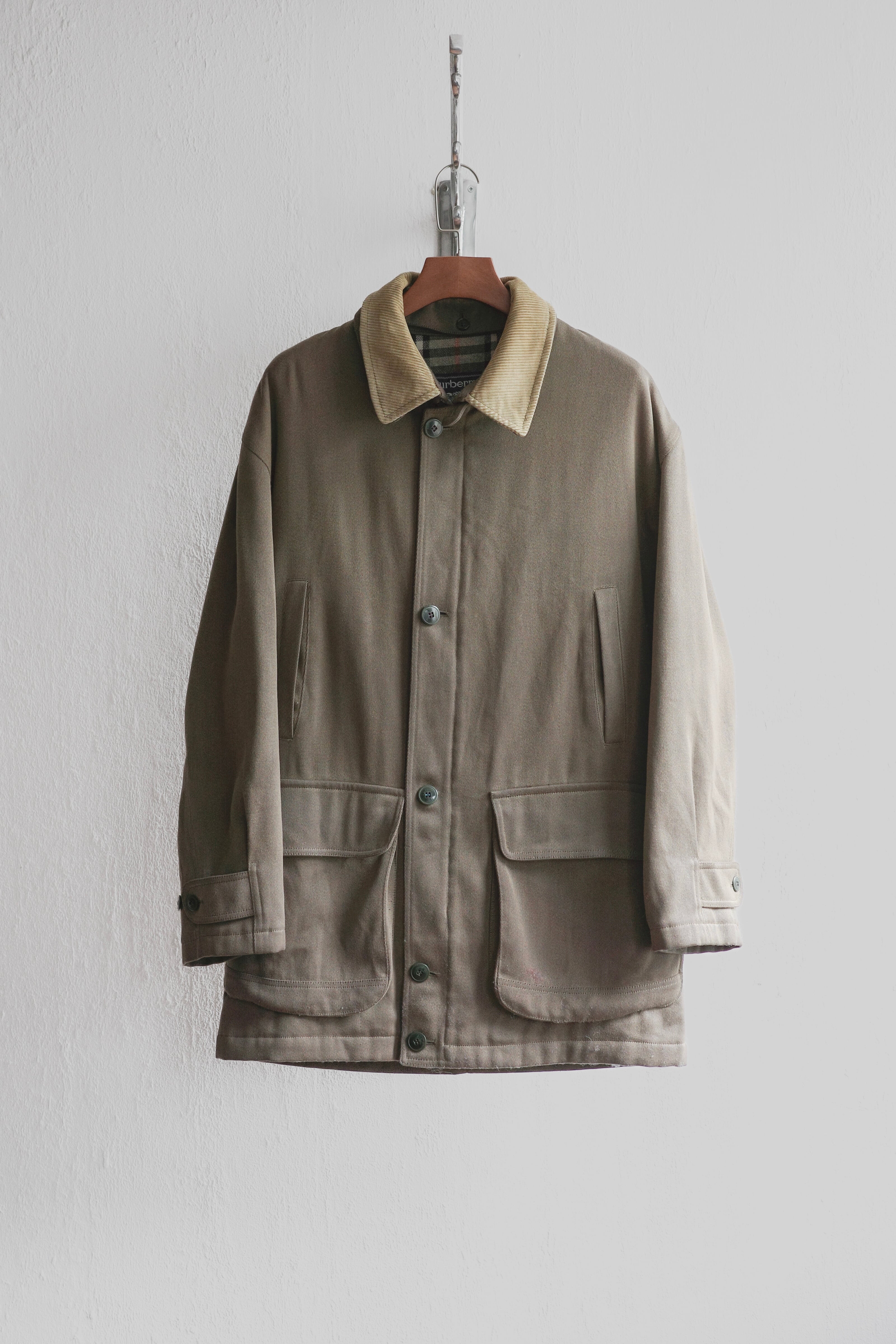 コーデュロイ素材のデタッチャブ襟が付き、コットン素材で重みあるボディのBurberry`s時代のスペイン製ハーフコート