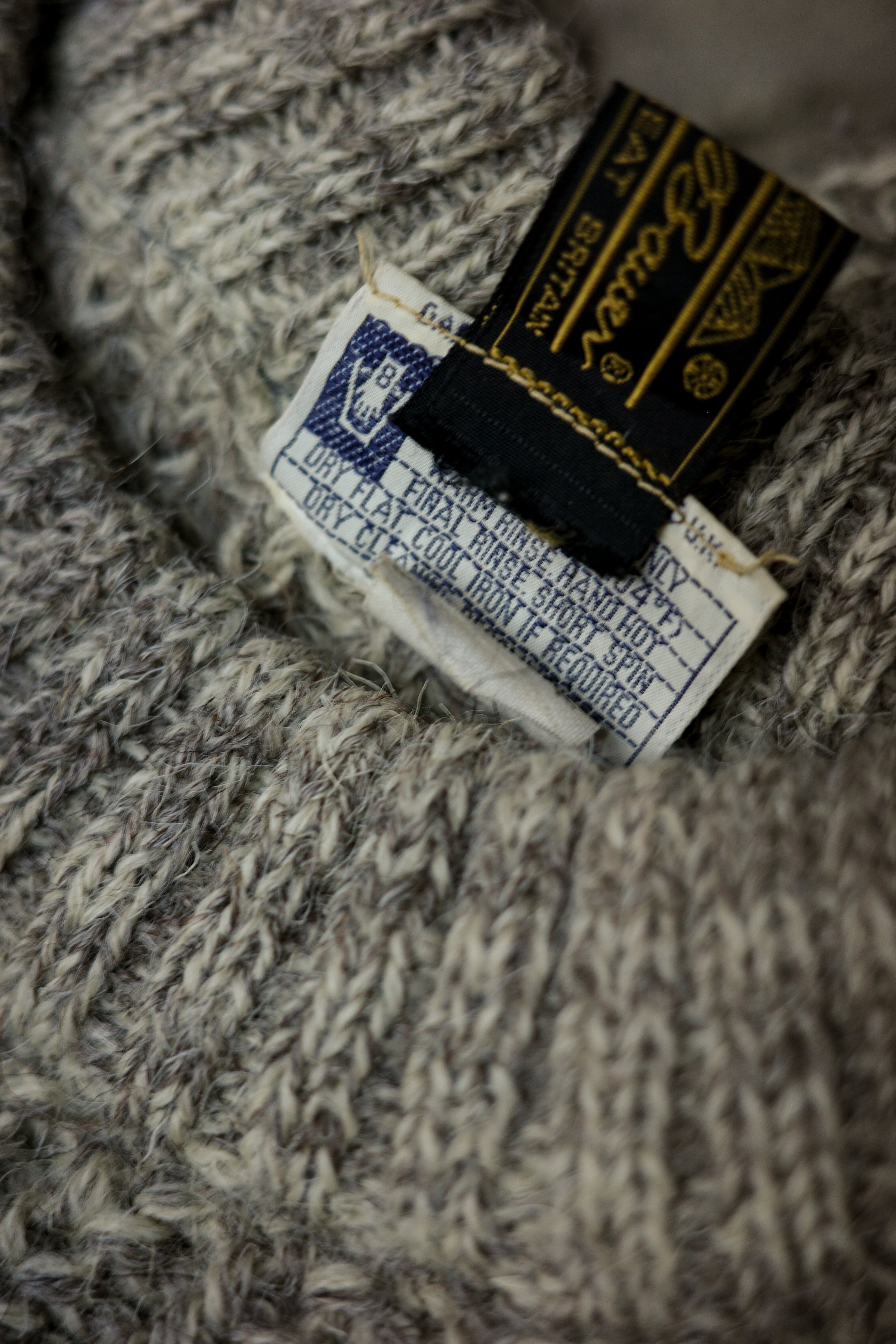 そしてこちらのアイテムは少し珍しいイギリス製造のエディーバウアーのアイテムになります。タグから見ても推定90年代頃のアイテムで、ローゲージ編まれたこちらのアイテムはヨーロッパの伝統的なハンドメイドのニットを踏襲したかのようなデザインです。温かみのあるベージュのカラーリングにラグラン仕様と申し分ないデザインです。