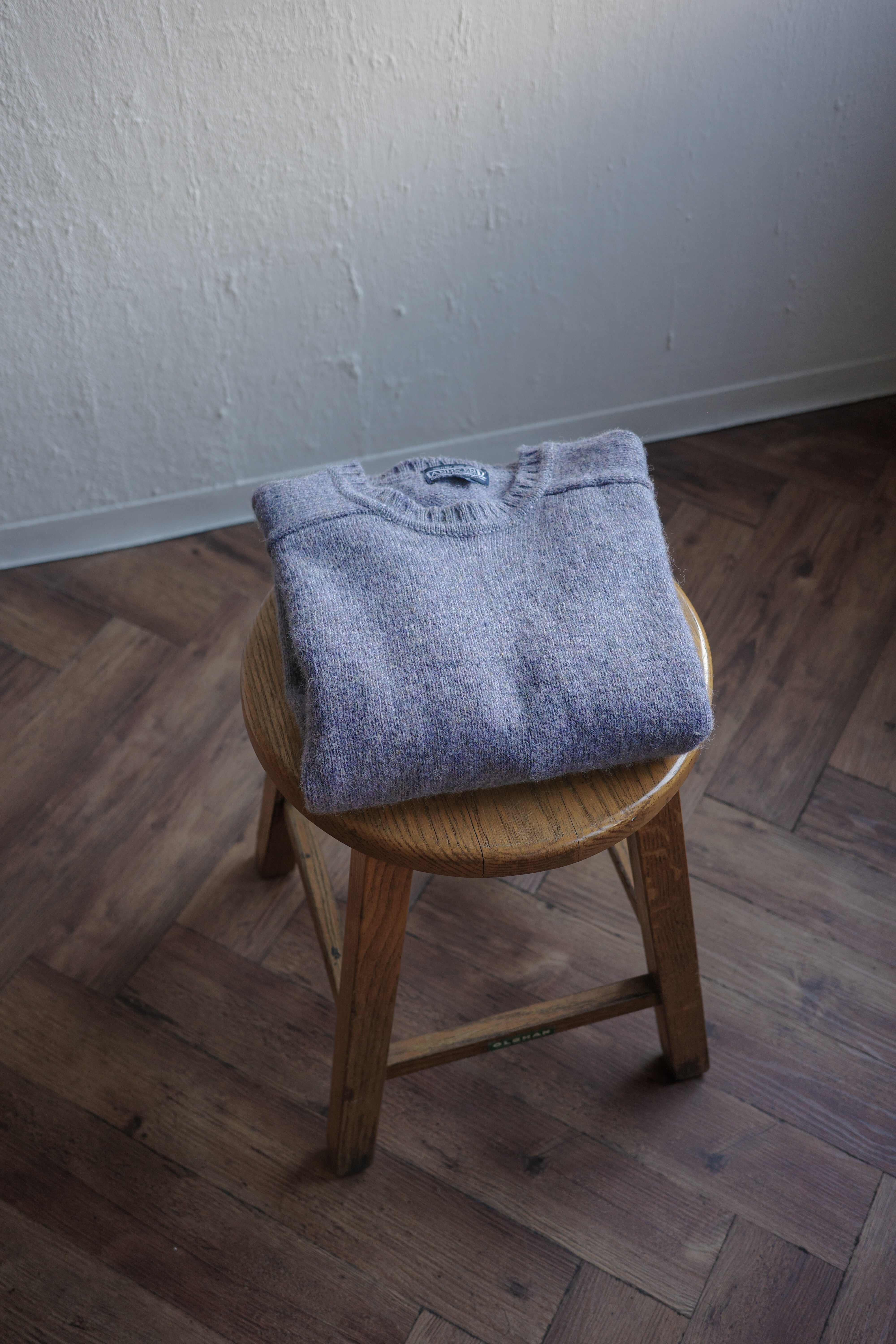 珍しいイギリス生産のランズエンドにパープルの色味が目を惹くシェットランドウールを使用したニット