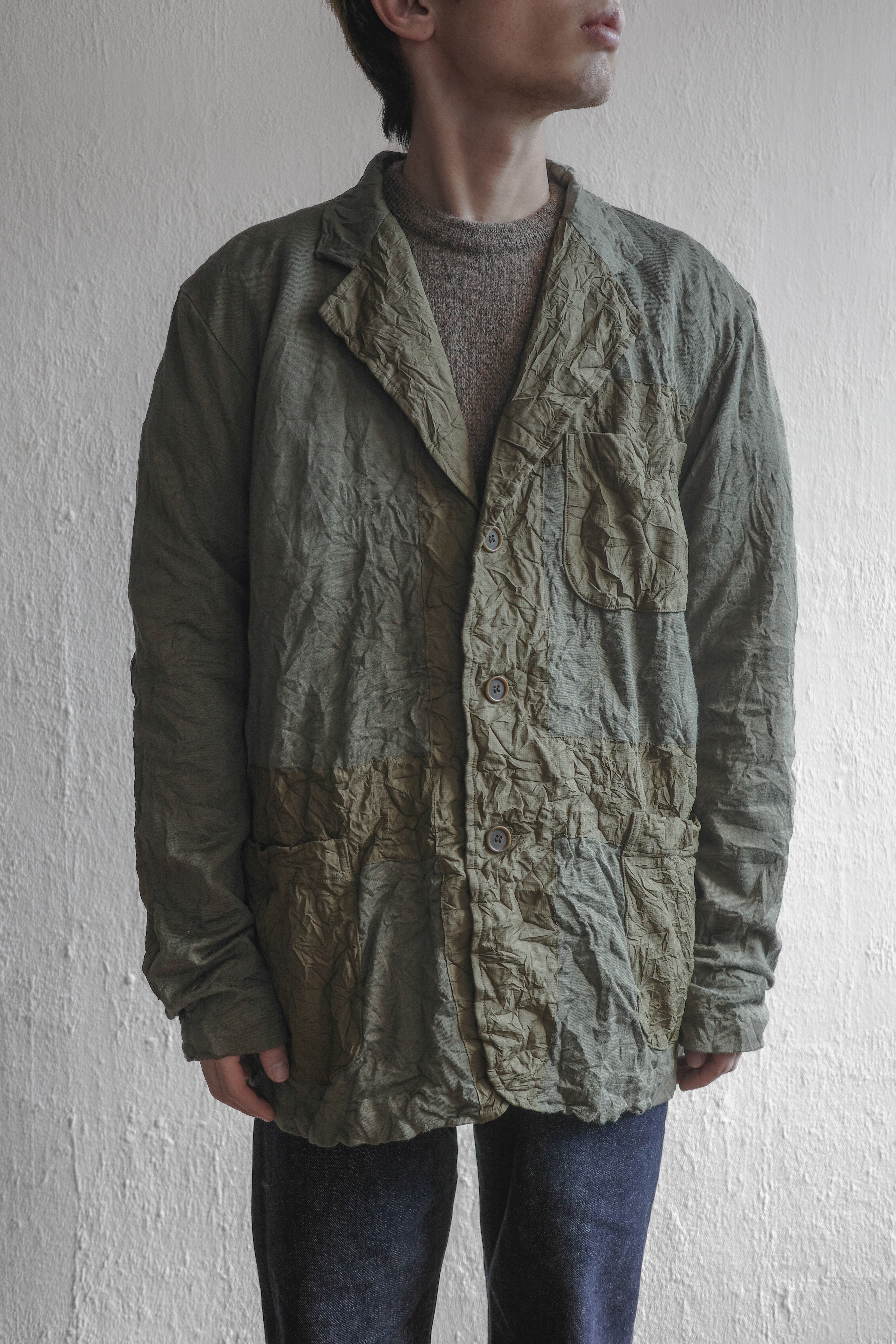 シワ加工が施されており、羽織った時のイッセイミヤケが持つ独特の雰囲気が味わえる逸品です。本来の3B仕様でテーラードのように羽織っても、従来のフォーマルな様相からはかけ離れた一つのアートピースであると言えます。