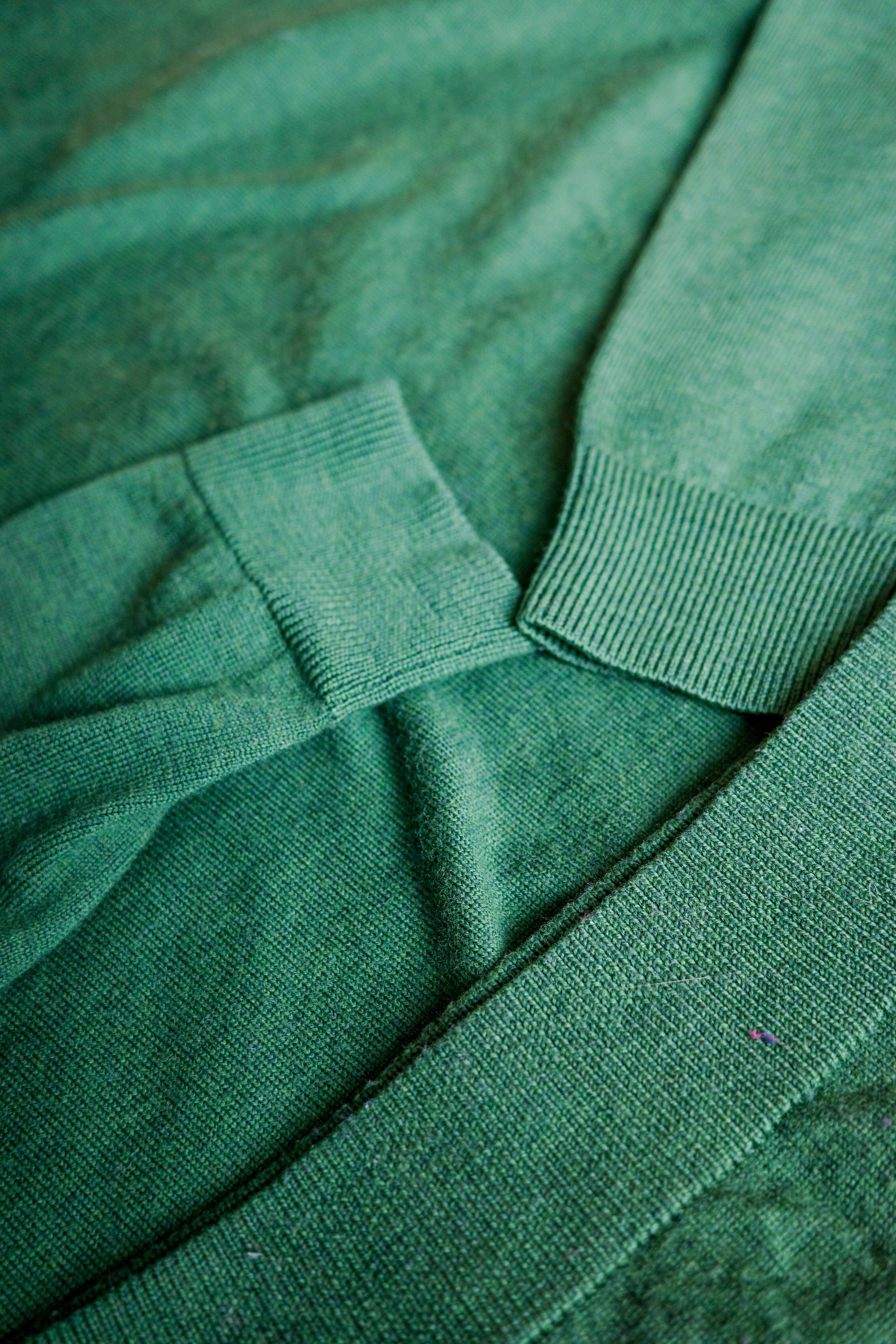高品質なメリノウールを使用し、発色良いグリーンカラーのオーストラリア製クルーネックニット