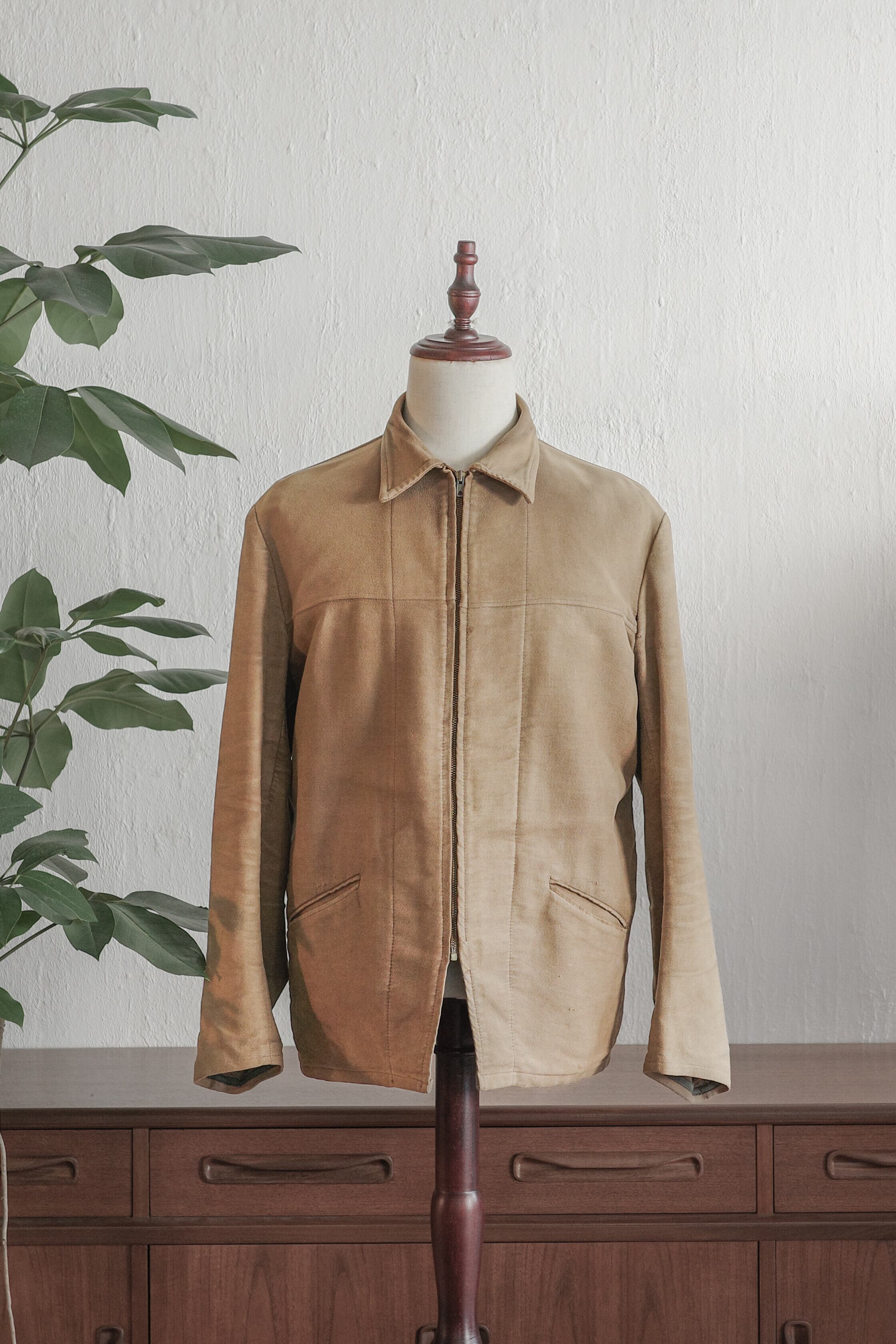 フレンチワークアイテムの中でも希少なテキスタイルの一つ”Brown Moleskin”を使用したジップアップ仕様のワークジャケット
