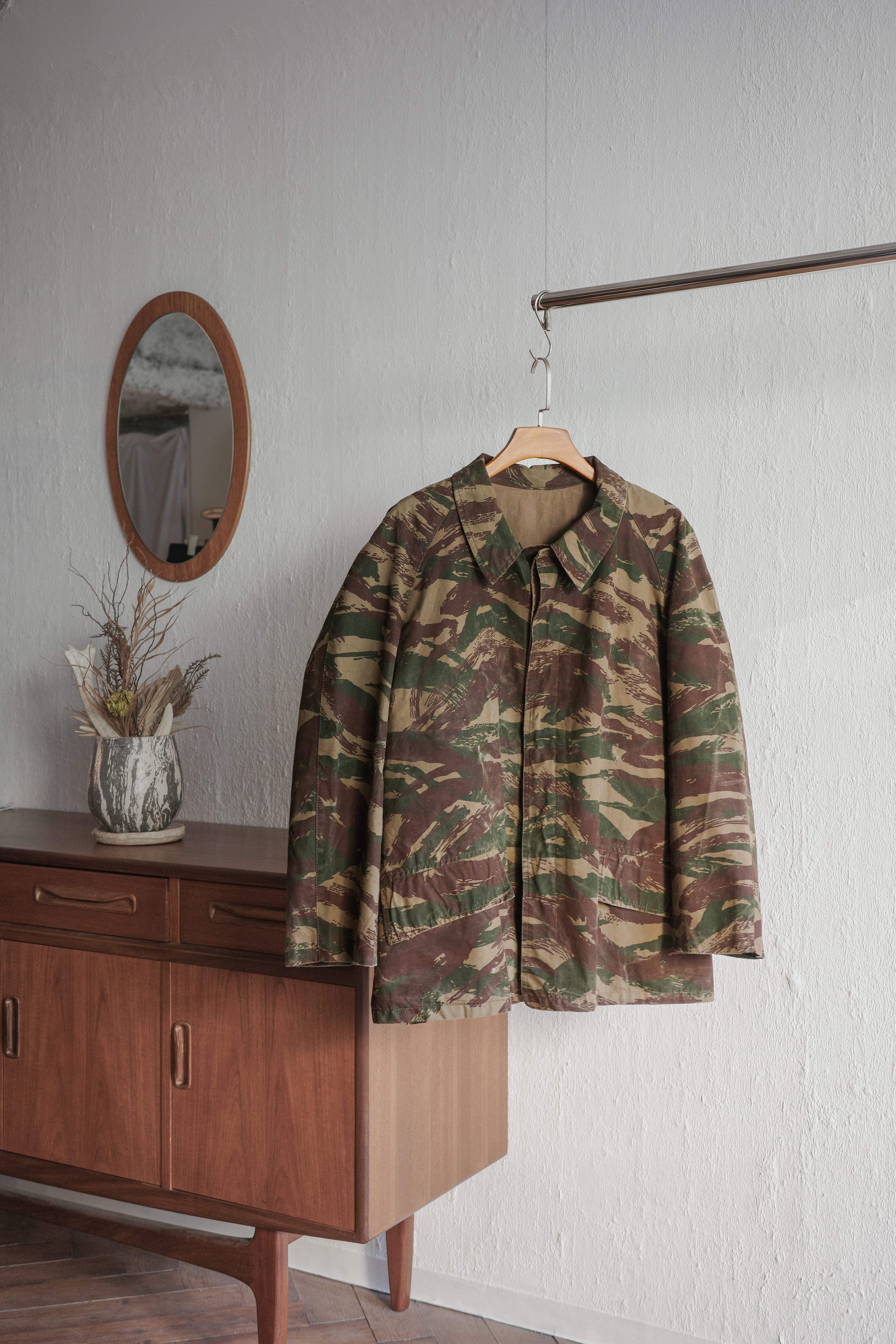 こちらは推定60年代頃のフランス製ハンティングジャケットになります。全体にリザードカモフラージュが使用された珍しい個体かと思います。