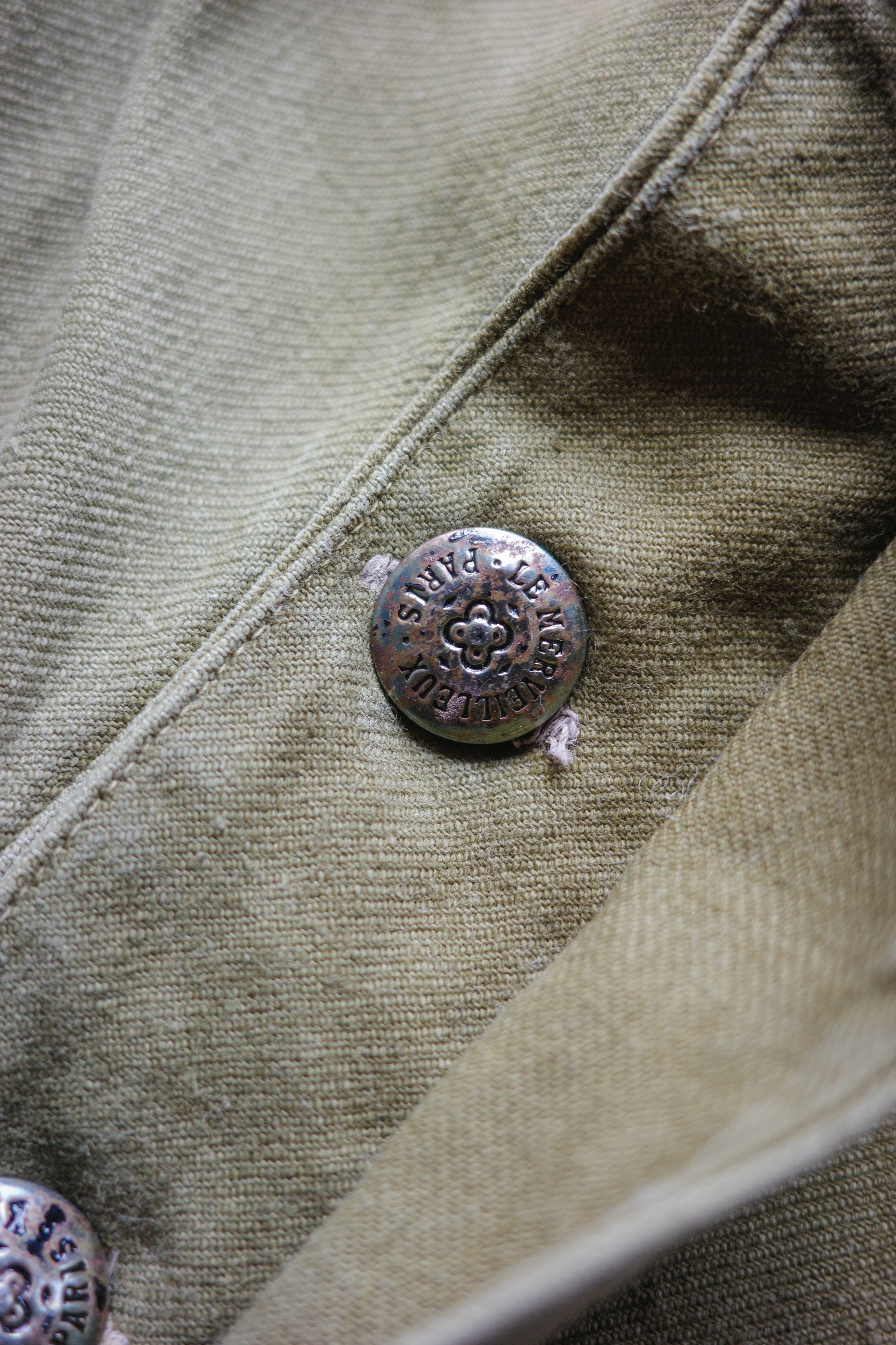 グリーンデニムのような様相でワイドなシルエットが特徴的なフレンチワークアイテム